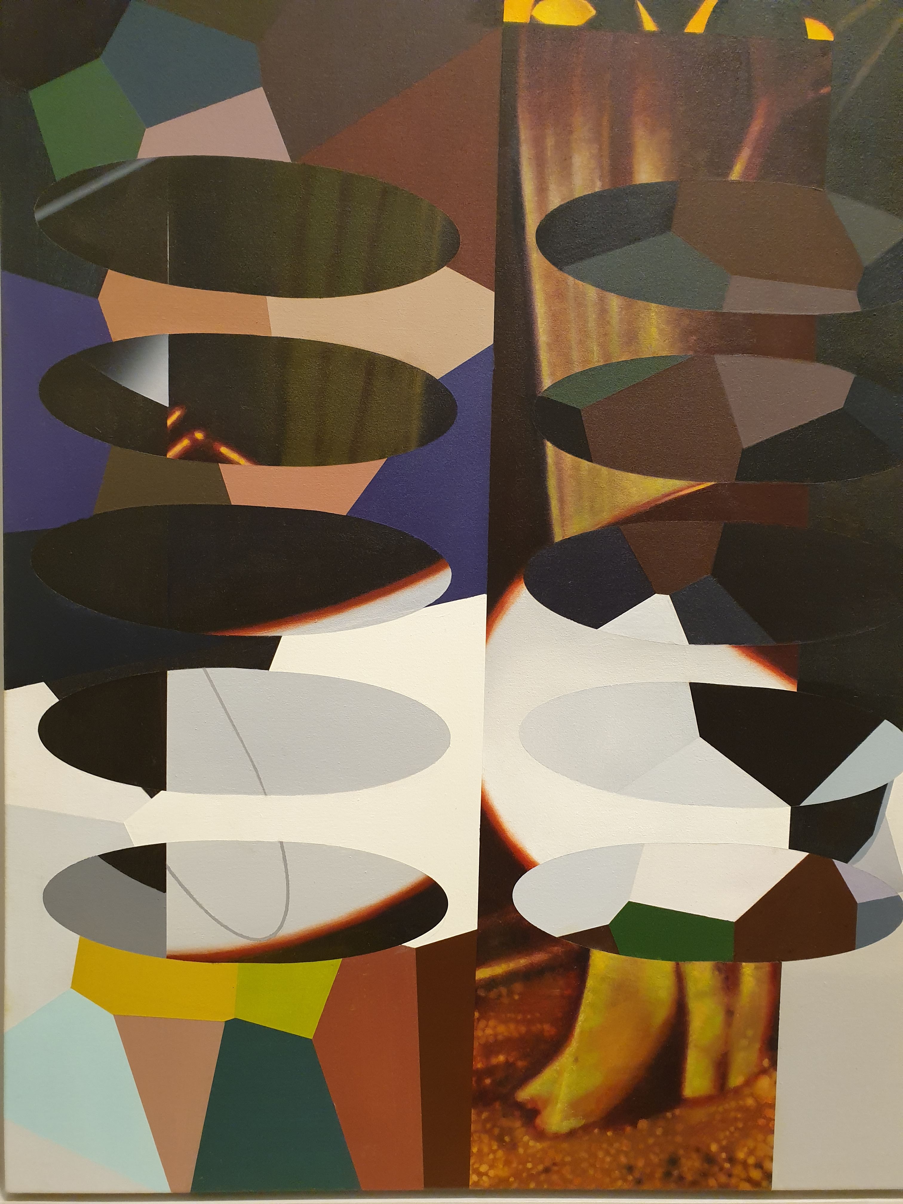 Every year I look forward to the RSA Annual Exhibition as a major showcase of contemporary painting, sculpture, printmaking, photography and installation. Of particular interest this year was the redivider frieze series by Jim Pattison in acrylic and oil on canvas. The artist employed a range of digital media and technology to manipulate imagery and information through painting and printmaking. I found myself just looking at the complexity of the shapes and colours for some considerable time to elicit meaning and a relationship with the series. I could readily relate this work to textiles and what I aim to do in my textile printmaking work…of the use of multiple forms-shapes, colours and line overlaid to construct dynamic layering effects. The colour range was so impactful…complimentary and contrasting. Such work inspired me to extend my use of painting and collage in my textile practice.