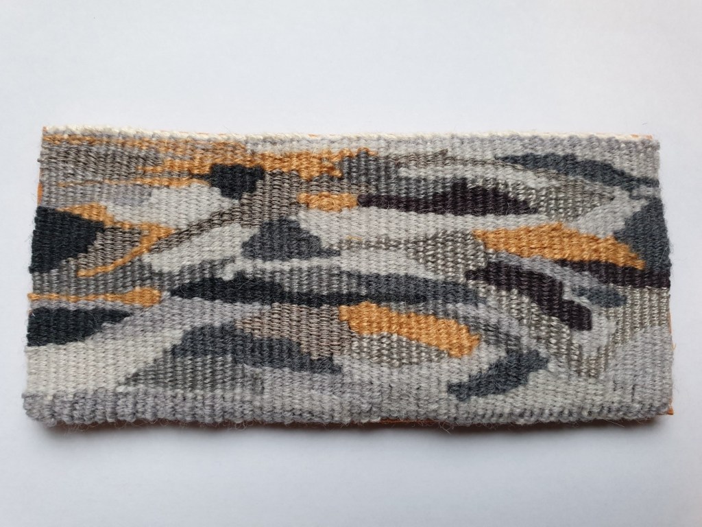 This more recent example heralds a new direction in tapestry weaving for me as I am now increasingly influenced by what I have to say and communicate in my textile art. My handprint making processes connect with my tapestry weaving as I focus on existential issues through objects and meaning, to establish connections and relationships.