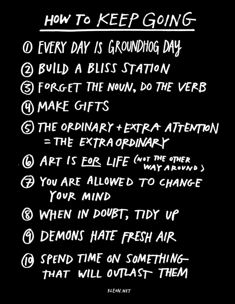 This has been a timely moment to read Keep Going: 10 Ways to Stay Creative in Good Times and Bad by Austin Kleon. As an NHS clinician trying to maintain my creative practice alongside COVID-19 and continuing to work has been difficult. That said this book has acted as a timely reminder that being creative makes me happy and of the need to take it one day at a time. Despite my limited time I have become more focused than ever as I try to make whatever time I have count creatively. I have increasingly used post-its as and when ideas appear so as not to lose them and to get them out of my head and in print. I have become more organised and disciplined to create a daily routine. I have ringfenced the first part of every day to do something creative even if its only for a few moments, to seize early morning before it becomes cluttered and affected. I make more useful lists now in order of completion to bring an increased sense of calm when I do not have the time to complete whole tasks on my to do list, so I always have a starting and restarting point. I liked the quote…Finish each day and be done with it, of increasingly learning, letting go and moving on…that ultimately nothing is wasted, and tomorrow is another day filled with opportunities and possibilities. Just keep working and something will turn up instilled such hope and optimism for improved creativity (Harvey Pekar).