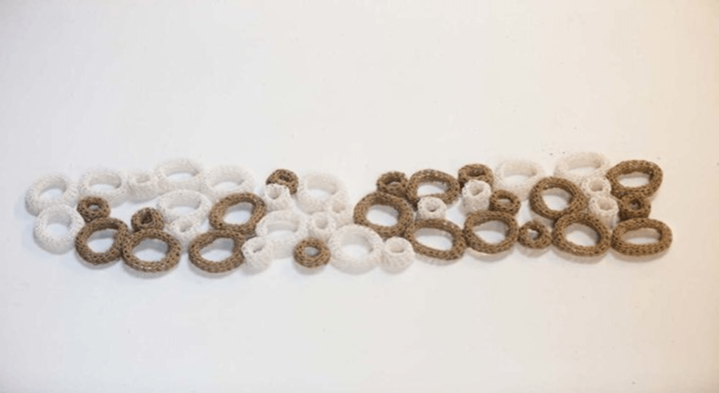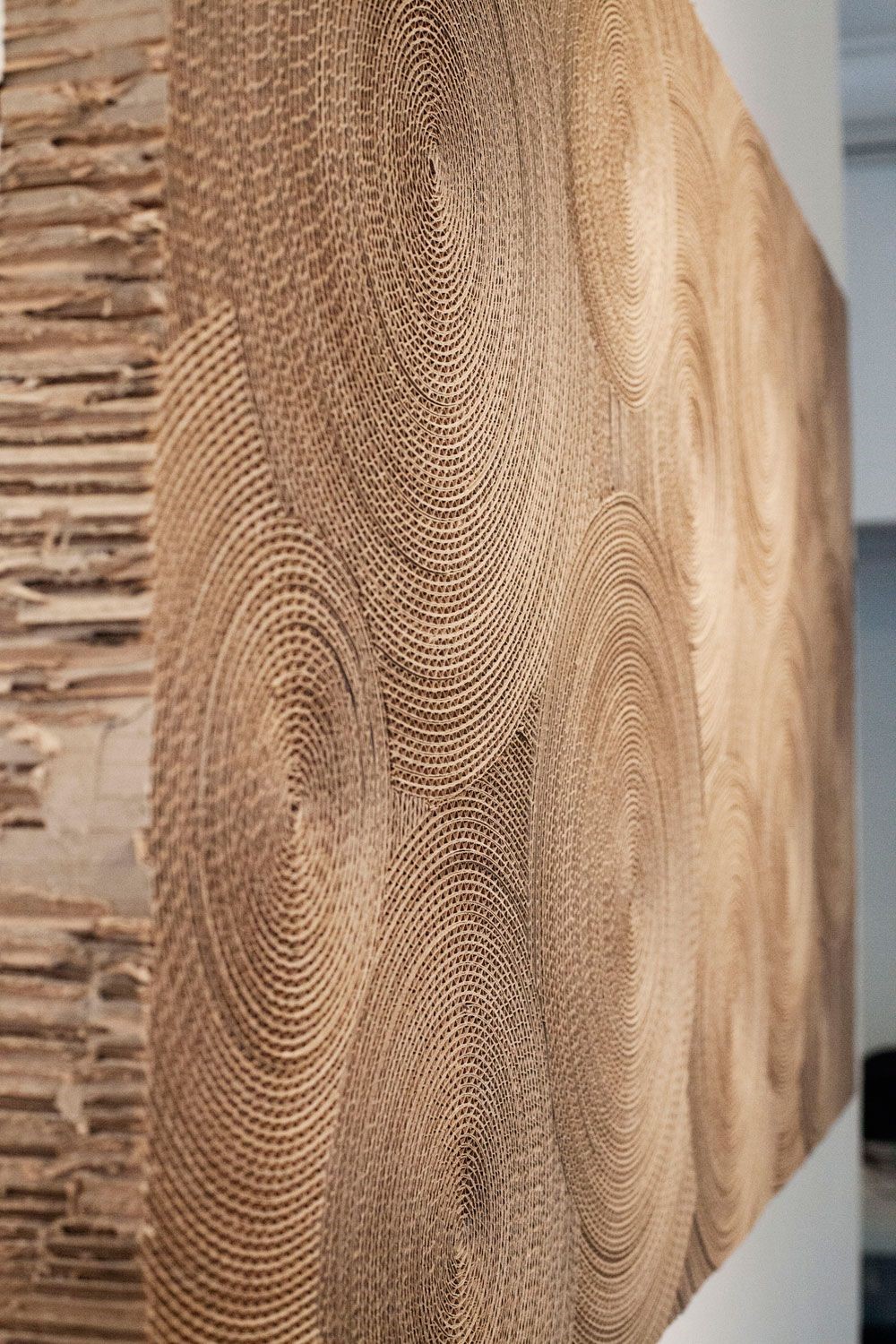 This material has been taken to another level and has prototyped a new way of thinking about cardboard as a valid choice of material for art, decor, and design. There is a noted enjoyment from diverting the material to make it soft and flexible, to find its transparency, shape in another form, of designing and making 3-dimensional works with simple shapes and organic textures.