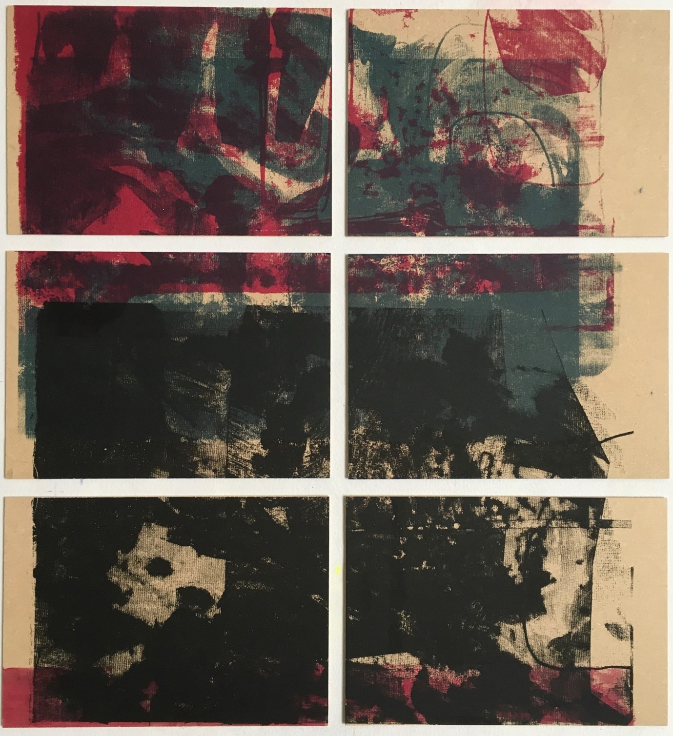 Although not completely new to Medium Density Fibreboard (MDF) I was new to using MDF as a material to print onto using screen-printing processes. As this material is created from waste…mainly wood fibres and chippings I felt that I was capitalising upon waste products which was environmentally sound. Medium Density Fibreboard (MDF) is an engineered wood-based sheet material made by bonding together wood fibres with a synthetic resin adhesive. MDF is extremely versatile and can be machined and finished to a high standard. From experimenting with MDF I was pleasantly surprised just how well the material accepted the printing ink. Single pulls using a small squeegee continued to be utilised as proven to be the most effective technique from exploring different approaches. Waste printing ink was utilised using black, blue, and deep pink to investigate the impact of colour on such a surface. The colours used within this series and other experimental prints all dried slightly darker which I liked. Given the printed and painterly effects achieved further research is planned to further investigate a greater range and scale of MDF.