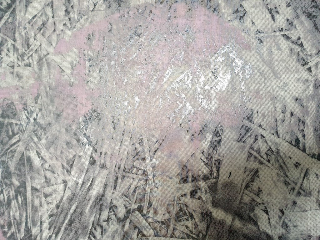 Despite the apparent potential given the textural surface qualities for screen-printing OSB Board proved difficult to print onto and with. The only way to capture something of its texture was to utilise an imprint from attempting to print onto its surface. That said even once the surface wax and resin had been removed to enable the print process the material then became too porous to yield a sufficient print.