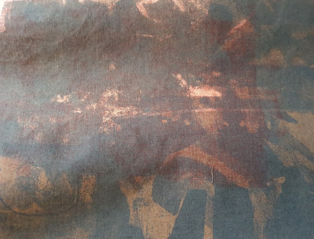 Ultimately, I was pleased with the eventual outcomes given the process involved and the scale of work which was undertaken. Through working and reworking the material…the cloth changed in line with the process used. Further investigation is possible to extend this work further to strip back more to change and transform, to layer to increasingly highlight concepts of death, destruction, and disappearance on a larger scale.