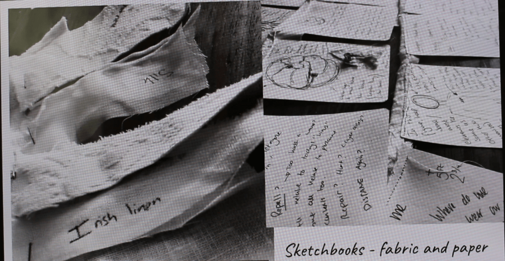 I really appreciated the artists acknowledgement of her sketch books as someone who has copious notes, sketches and drawings pulled together into hand compiled collections. I feel more confident to evidence such workings as personal appendages-attachments of me and my own creative process. I am also fully appreciative of the information gleaned from the online degree presentation itself, of the level of expectation, of the mix of PowerPoint and video, of making oneself more known through live narrative and emotional content.