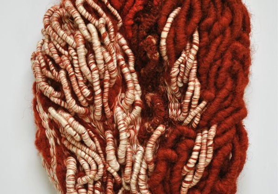 The artist stated that what attracted him to woven tapestry was how this ancient form, one of the oldest forms of weaving, seemed to be open to manipulation and change, and in the right hands this is altogether possible. I was seduced by its distinctive, handsome exterior, its tactile and versatile properties, which satisfied my hunger to produce something different. What I was most definite about was that my approach would be unorthodox, unusual, and not what my tutors wanted – mundane, pretty, woolly flat pictures!