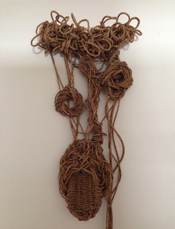 The artist noted I am currently working on self-portraits that express various emotions. The self -portrait pictured here is in response to my experience at Art Basel Miami 2014. My original inspiration for this body of work came from the emotional aspects of my life and experiences. Inspiration also comes to me from the natural world. Light, shadow, texture, form, and repetitive patterns all play a part in my rope work.