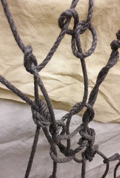 Continuing construction of Entanglement: Compromising Life, Struggle for Survival through a series of weaves and knots to symbolise emotional expression and disruption. Reclaimed black 6mm hempex rope. (1.3 x 5 metres)Continuing construction of Entanglement: Compromising Life, Struggle for Survival through a series of weaves and knots to symbolise emotional expression and disruption. Reclaimed black 6mm hempex rope. (1.3 x 5 metres)Continuing construction of Entanglement: Compromising Life, Struggle for Survival through a series of weaves and knots to symbolise emotional expression and disruption. Reclaimed black 6mm hempex rope. (1.3 x 5 metres)Continuing construction of Entanglement: Compromising Life, Struggle for Survival through a series of weaves and knots to symbolise emotional expression and disruption. Reclaimed black 6mm hempex rope. (1.3 x 5 metres)