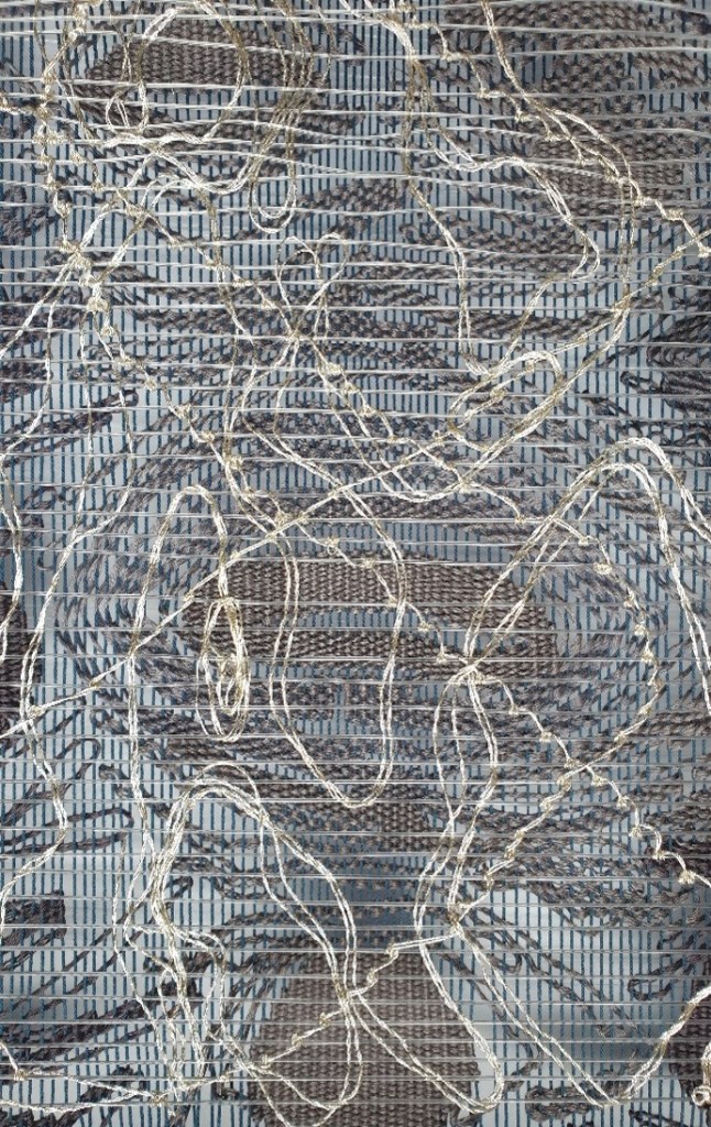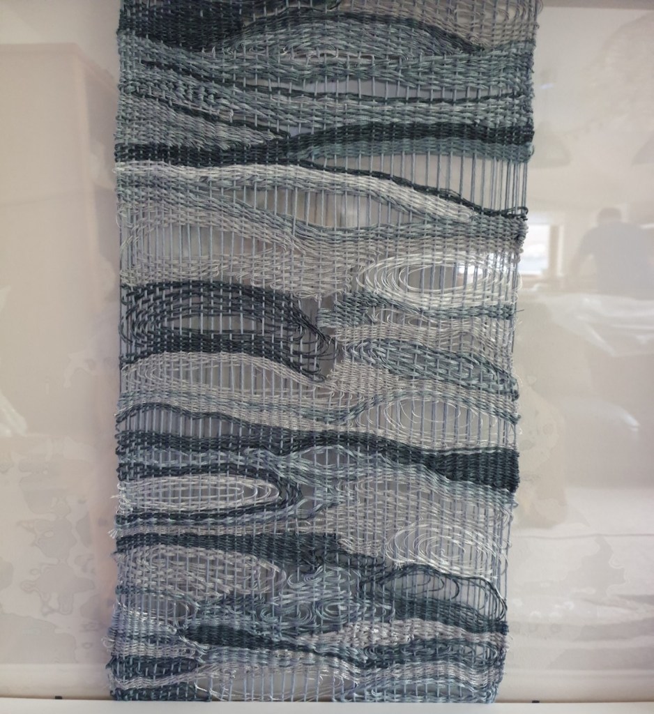 Through getting back into tapestry weaving, regularly weaving samples I became more aware and in touch with my past. From focusing initially on coastal life, I naturally progressed onto the sea. The sea pervades my identity, it is who I am as I have evolved from generations of fishermen and a long line of textile workers. The sea is also fundamental to us all as it is inextricably linked to our survival given global warming alongside marine and coastal pollution. This series of tapestry weavings illustrated a departure from what went before as I got something more of myself into the creative process. I focused upon water and the sea, of its movement with the ebb and flow of the tide given my own origins. I hand dyed a range of repurposed silk, cotton, linen threads, and wool to offer a greater tonal range of blues and greys to better reflect the many colours of the sea when in reflection with the sky. As I weaved, I could almost taste the salt and feel the water coursing around my body…it was as if I were back at the coast, the work emotionally resonated with me as it evoked so many feelings. As a result, I experimented more widely using the sea as the core theme.