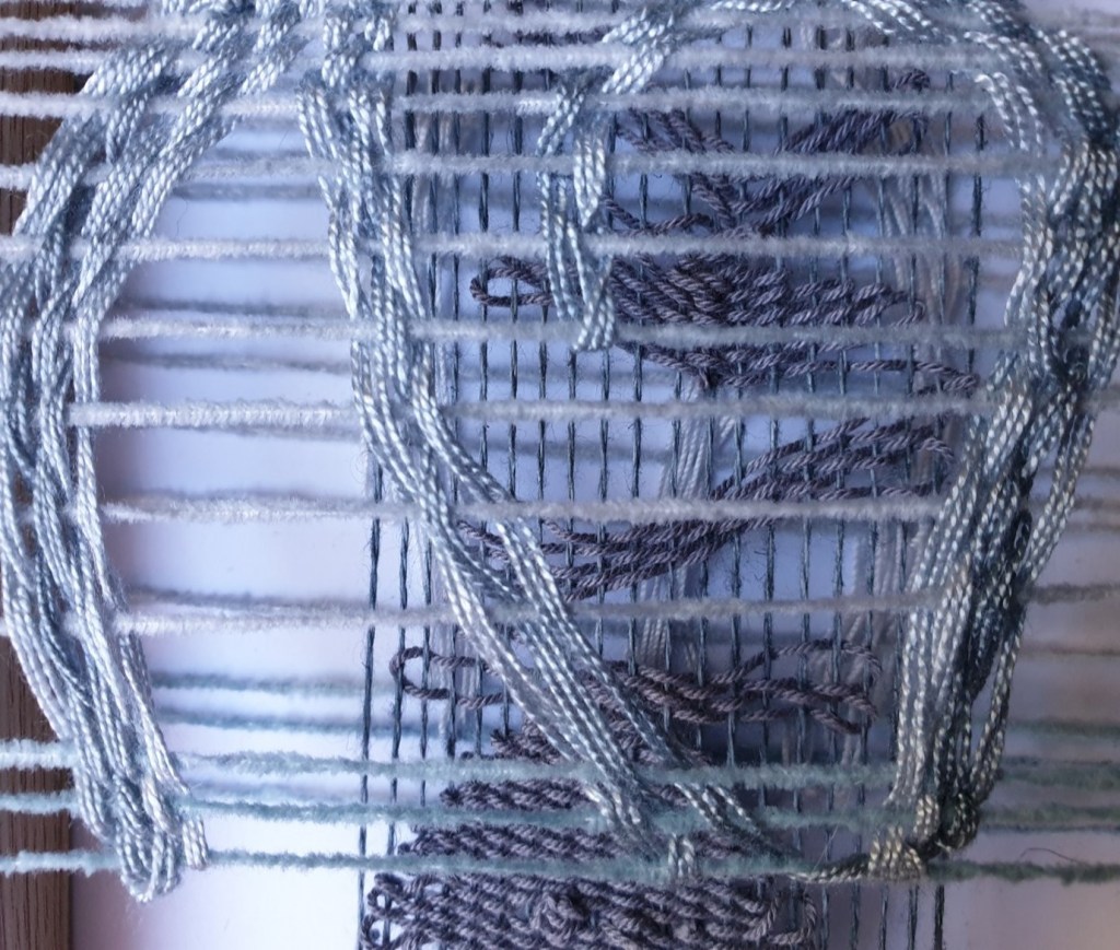 Tapestry Weaving Sketches- Initial smaller scale sampling with mixed cotton, silk and linen threads on frames