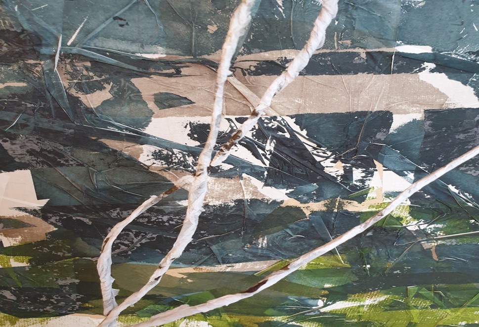 Environmental Breakdown Communicated through Meaning and Making- Use of Splitting, Tearing, Stretching, Ripping Paper Foundations with Screen Printed Imagery of Splintering and Fracturing of Natural Forms, Shape, Line and Texture