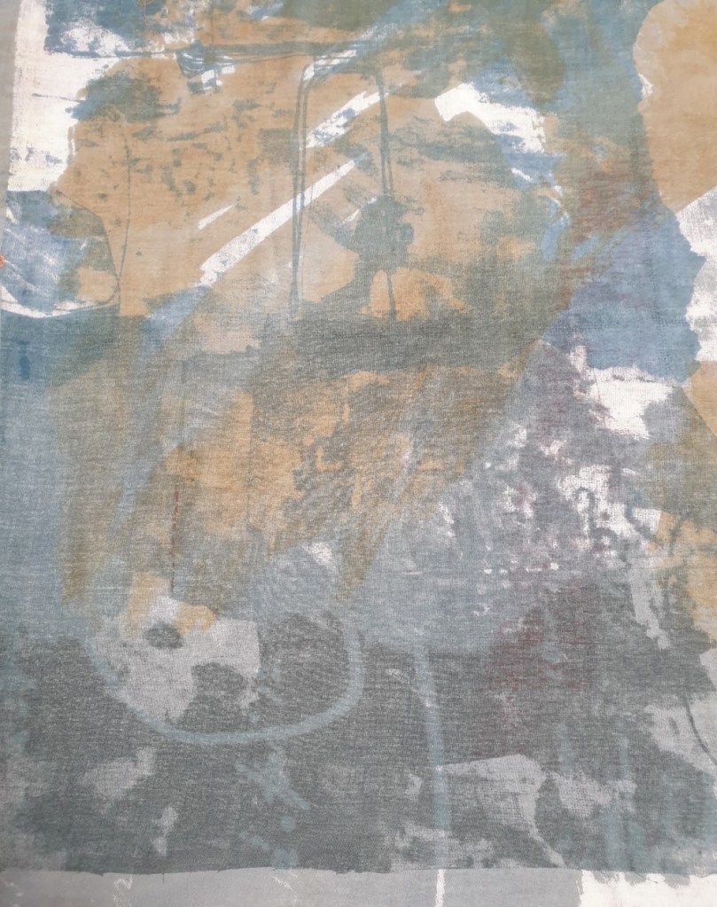 Dawn Dupree’s new work explores the process of change and transformation. Influenced by her personal and clinical experience as a psychotherapist Dawn’s work is concerned with the internal landscape, our embodied experience, intersubjectivity and unconscious processes. This textile artist explores narrative and process. Her constructed landscapes often reference the environment, transition, and relationships. Collaged images, drawings and mark-making are integrated, often creating distorted, ambiguous, and potentially unsettling results. Intensely coloured and layered surfaces are printed using dye-pastes, discharge, pigments, and flocking. https://www.62group.org.uk/artist/dawn-dupree
