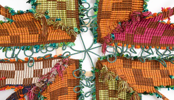 This artist’s weavings are motivated by her ancestral and ongoing negotiations of approximate assimilation, synthetic identities, and the excesses that stride beyond categorizations. Chicanx, Punjabi, Hawaiian, Black, White. It was interesting to hear and communicate with this textile artist through the Textile Talks series through my membership with the Surface Design Association, for her to speak about her work and the meaning it had for her directly through the online zoom lecture. The artist explained the theoretical underpinnings which holds her textile work together. I could relate with this sense of re-storying narratives but from within a therapeutic space…of individuals using the space to reconstruct their own narratives, who they are, to unlearn knowledge systems and to make known their own stories which have been unseen and unheard for many years. This space represents the embodied experience of the individual in therapy, of the capacity to express to give a tangible or visible form to feelings and thinking. I liked this understanding of mis-storied and misaligned identities which are wrapped up within the warp and the weft, of the balance and tension between the materials to hold the narrative in place within the space, of reconstituting and altering the narrative through the therapy process which can then be visually represented through the layering of materials with the layering of experiencing and meaning. This idea of disruption, challenge, change, and re-imagining narratives sits well with therapy and what happens within such bodies within these spaces. This idea of completion is the antithesis of therapy as we are so often unfinished in process, of disrupting the warp and weft, of deliberately leaving weaving split, torn, and ripped with spaces unfilled to challenge the continuity of unhealthy narratives, assigned identities which continue to harm, label, abuse, dismiss, avoid, and discriminate.