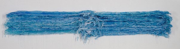 The North Sea Project, a winter residency/exchange to Stavanger, Norway, offered this tapestry artist some time to research and experiment with new materials and techniques including rolls of tracing paper, painting it, and drawing into it with machine stitch was the starting point for this new body of sculptural works. I like the increased use of mixed media including stitch within her work.