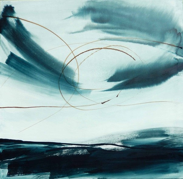 Maggie Ayres is a contemporary mixed media artist whose work continually develops as she discovers and explores working with new techniques and materials. She is constantly evolving her use of texture, line, and light through abstract work which I like. Ayres has been exploring the dynamic art of encaustics, painting with a medium made from melting beeswax with tree resin. Working layer upon layer, she builds up numerous translucent layers on wooden panels, creating unusual visual depths as incorporated marks and colours build-up. Threads, fibres, and rust-printed papers can be embedded too, along with fine additions of oil paint and graphite. Maggie Ayres has explored and developed many different techniques whereby her work has focused on the inner world of memories, beliefs, and emotions which I relate with. More recently she has used watercolours within her multi-layered collaged panels. Like many artists I follow her on social media, I keep abreast of her news, teaching and what I can learn from her through her website and video clips.