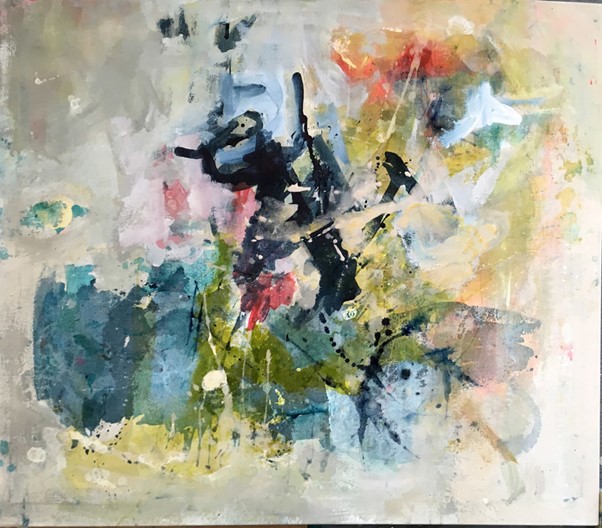 Her abstract work is built up in layers where unexpected combinations of colour and form can reveal the direction of the work and the original idea might only be glimpsed as ephemeral elements in the finished work. She creates a metaphor on canvas of a journey in the literal and temporal sense from her surroundings. http://www.marymackaystudio.co.uk/