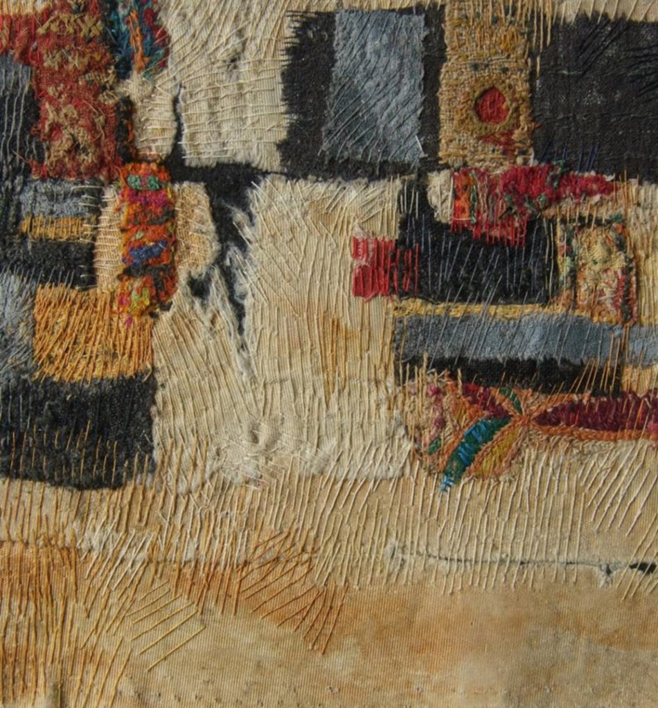 Aspects of restoration and repair often feature in my work – anything showing signs of wear and tear, usually with an unknown history, just calls out to me and begs attention! https://textilestudygroup.co.uk/members/gwen-hedley/