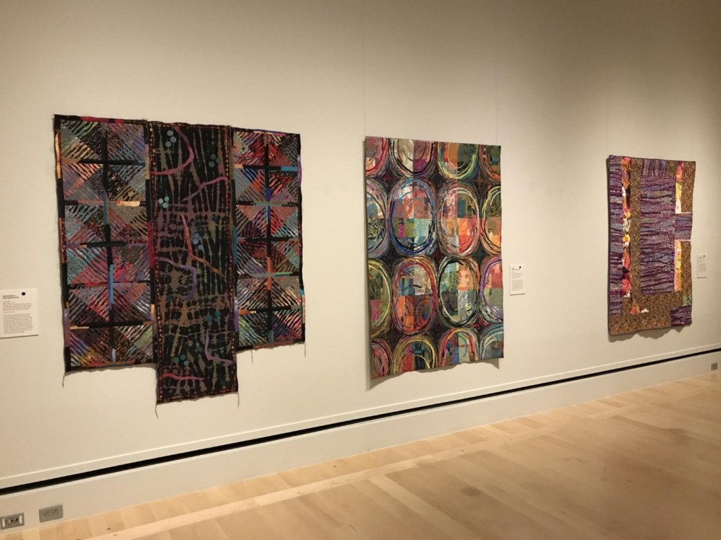 As stated by Sandra Sider, guest curator of the current exhibition the expressive possibilities of fabric and stitch viewed in a gallery space opened avenues of creativity which were explored in various ways by the artists in New York Nexus, who include Sue Benner, Michael Cummings, Radka Donnell, Marilyn Henrion, Joan Lintault, Patricia Malarcher, Paula Nedelstern and Robin Schwalb. New York Nexus presents some of their work and offers a comparative analysis of their contemporary studio practice to and with the earlier counterparts within the Abstract Design in American Quilts exhibition in its original Whitney Museum setting and beyond. As discussed throughout the textile talk recording it has been interesting to see the differences between and amongst the textile artists as well as the comparable use of techniques, materials, colour, design, and inspiration. I have been particularly enthralled by the contemporary relationship with quilt making and its capacity to tell stories and to rewrite historical narratives in innovative and thought provoking ways. https://www.saqa.com/events/abstract-design-american-quilts-50-new-york-nexus
