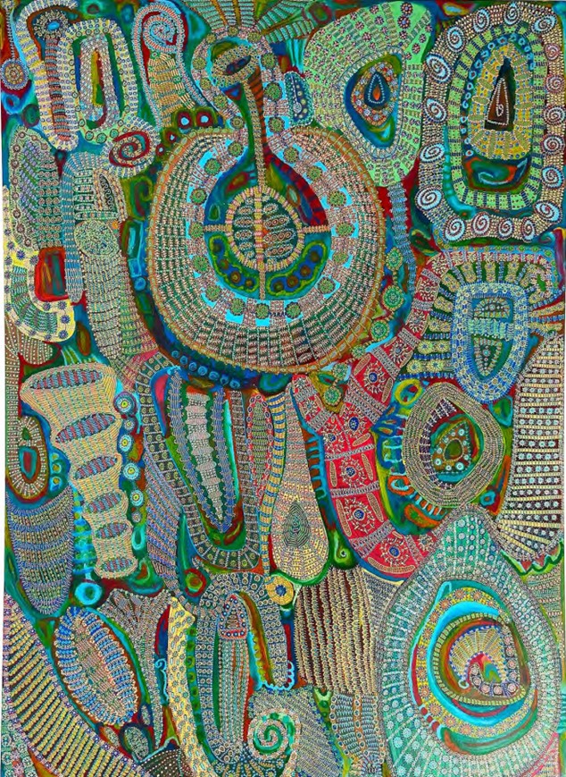 Emma-Louise Grady noted that her paintings explore the practice of intuitive mark-making like aboriginal art using vivid colours which are influenced by her surroundings and environmental influences as well as her own creative process. Through the exploration of patterns, her work represents a sense of letting go and forging her own imagery. The patterns created are unique to each painting, allowing them to stand on their own. With every intricate detail committed to her painting, it creates worlds that exist only within each other. Each piece created has endured a variety of process stages involving 5-6 primary colours, allowing it to have a significant amount of layering to each painting, creating a sense of depth. In a world where commitment to a concept is favourable, her work stands alone as vibrancy takes the lead. https://www.emmalouisegradyart.com/