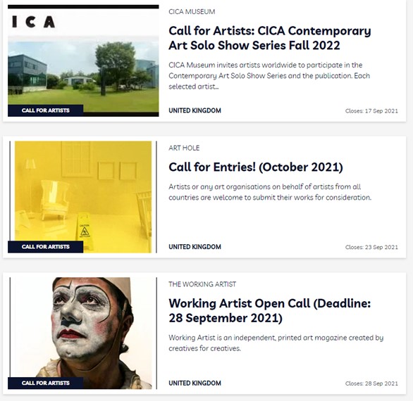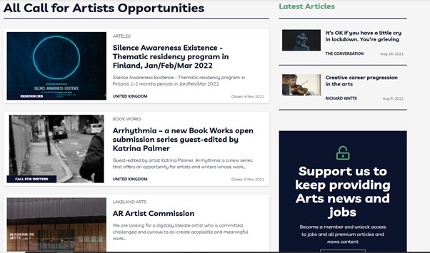 An example of one of the many websites which advertise calls for work for artists from The Arts Hub