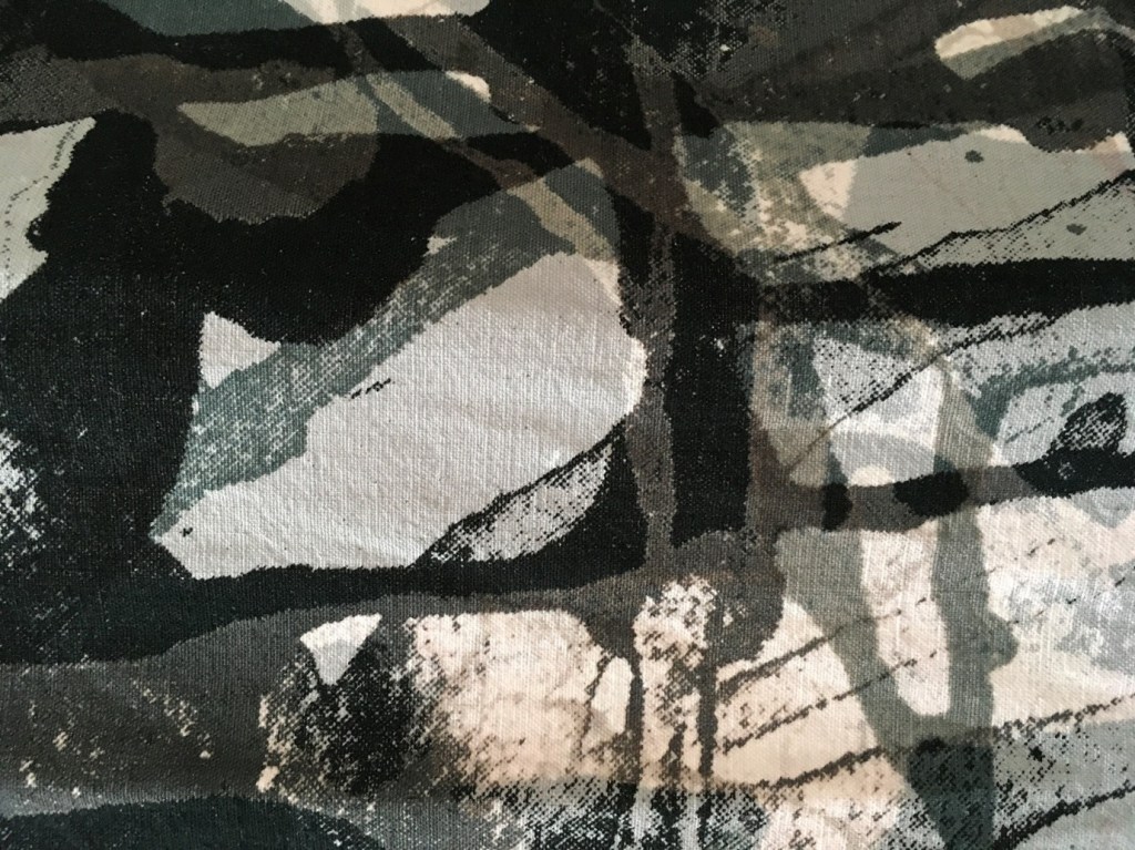 Video clip of areas of the screen printed vintage linen bedsheet to highlight increased detailing of the imagery, layering and colour palette