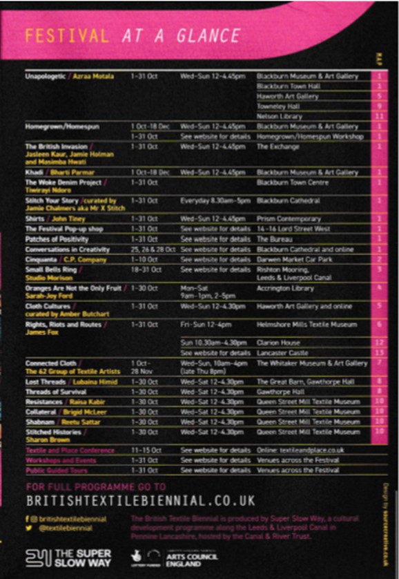 One of my highlights for October 2021 was visiting the British Textile Biennial in Lancashire. I was fortunate enough to dedicate a whole weekend to doing nothing else but visit most of the exhibitions. In photographing and recording each exhibition I was able to reflect upon my own highlights which very much correlated with those highlighted within the event and exhibition literature. Indeed, the accompanying exhibition literature was of such a quality that it has been marked as the standard to aspire to for my own forthcoming exhibitions next year.