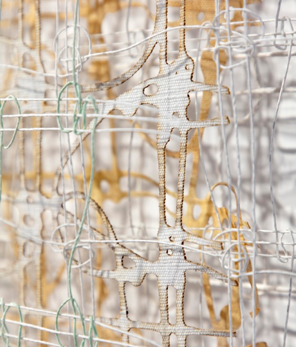 Anne Bjørn has created traditionally woven tapestries, but has always pushed the boundaries for what is possible within this specific field – in terms of both technique and material. Her woven tapestries have evolved into an open expression where the individual thread is visible and where the many layers and the shadows are used deliberately as a means of expression. These works may be experienced as mental spaces. https://annebjorn.dk/